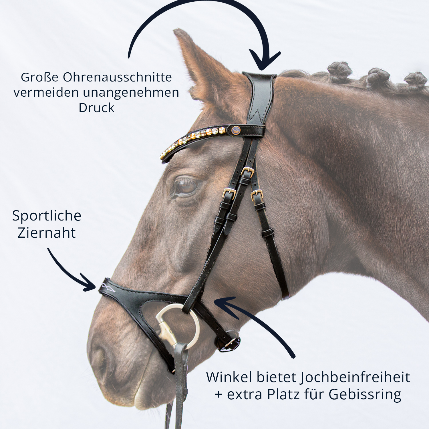 Erwirbst du eine BRIDLERY-Trense ist dir eine perfekte Passform garantiert.
